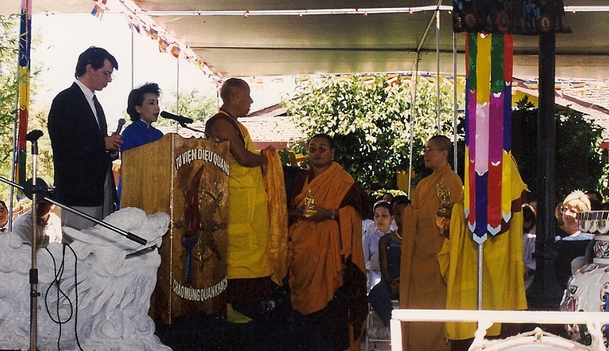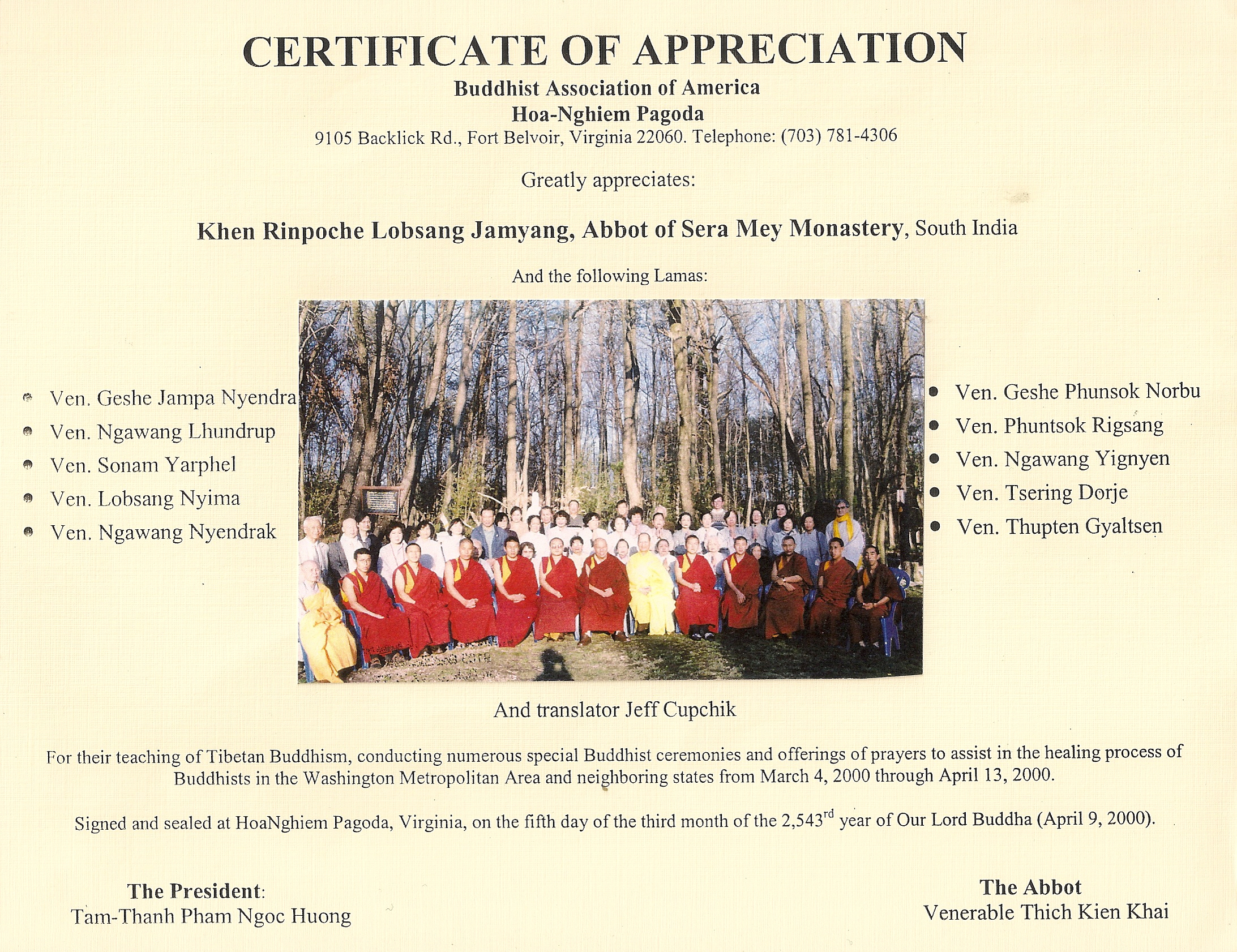 I had the privilege of serving the Abbot of Sera Monastic University, Khen Rinpoche Lobsang Jamyang, and a delegation of 10 monk ritual experts as their translator, coordinator, and cultural broker. This allowed me the opportunity to gain familiarity with Tibetan sacred liturgical ritual music performances. Hosted in family homes or temples across America by sponsors in Diasporic Vietnamese and Chinese Buddhist communities, I lived on site with the 67 year-old Abbot and ten younger monk-musicians, all of whom had received extensive training in sacred ritual performance arts.