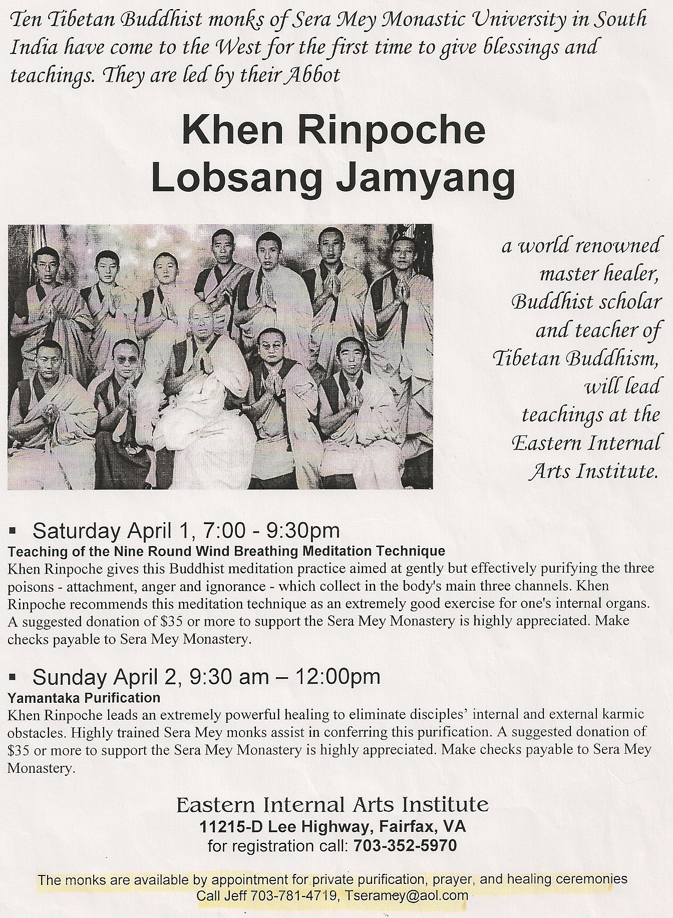 Eastern Internal Arts Institute, Khen Rinpoche Lobsang Jamyang (one page notice)